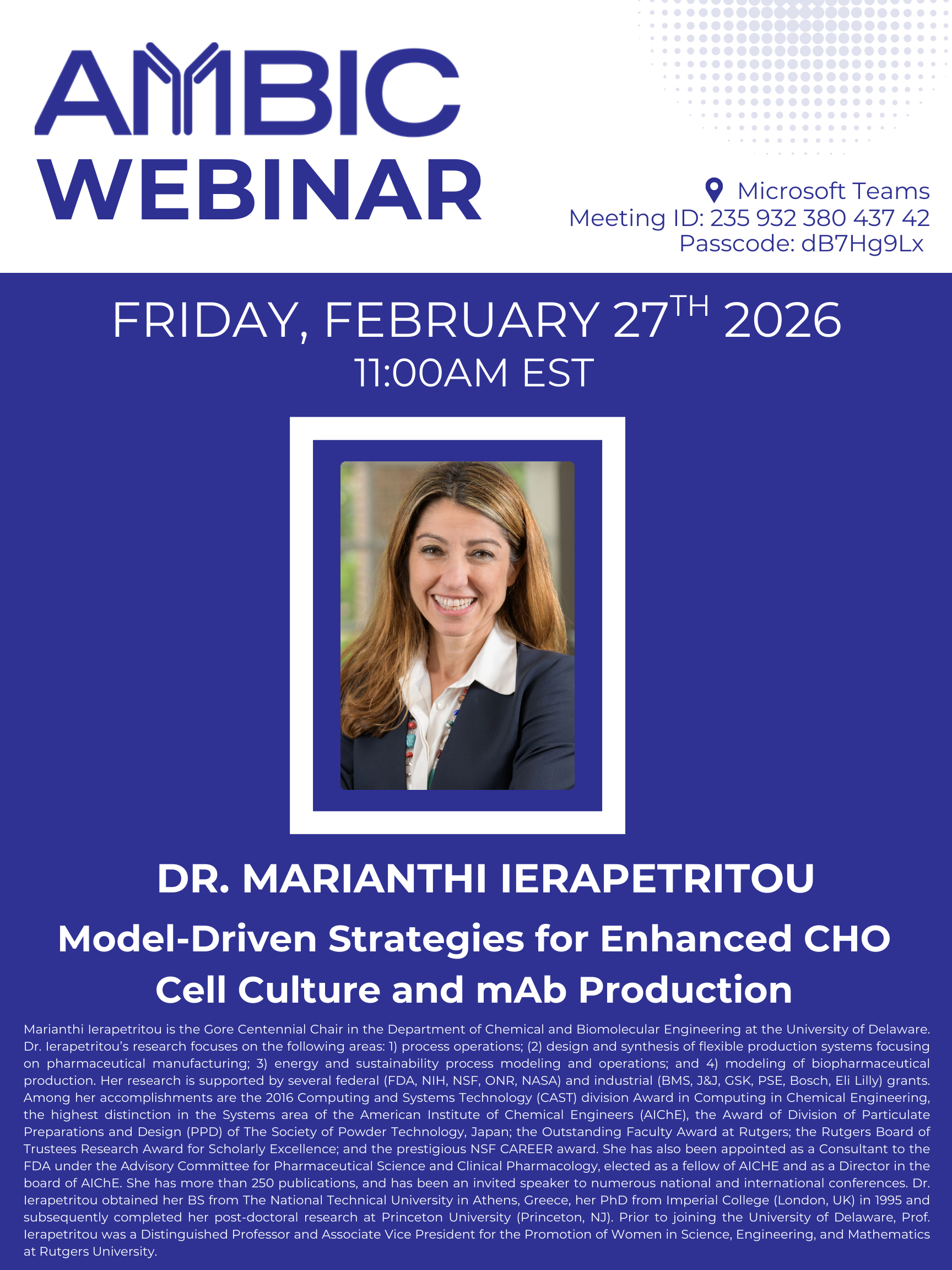 AMBIC Webinar: Dr. Marianthi Ierapetritou “Model-Driven Strategies for Enhanced CHO Cell Culture and mAb Production”